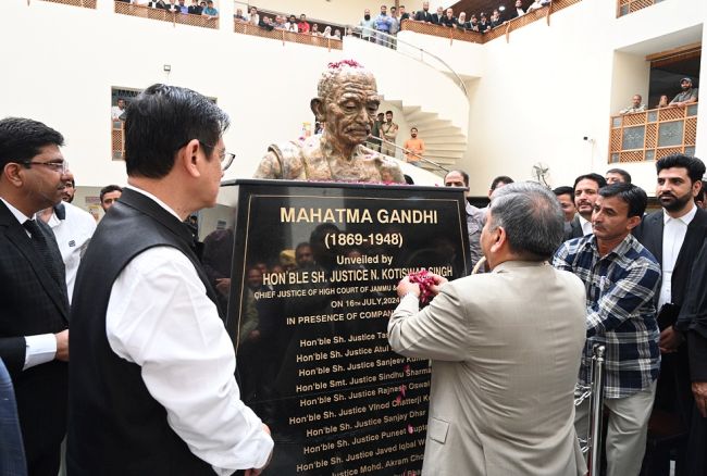 SRINAGAR: Chief Justice of the High Court of Jammu & Kashmir and Ladakh, Justice N Kotiswar Singh, today unveiled the bust of Mahatma Gandhi inside the High Court Complex, Srinagar.