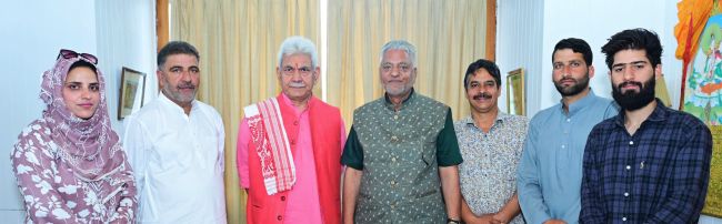 Later, Shafiq Mir, Chairman of All J&K Panchayat Conference and Gulzar Ahmad Bhat, Chairman of All J&K Folk Artists Association called on the Lt Governor at Raj Bhawan.