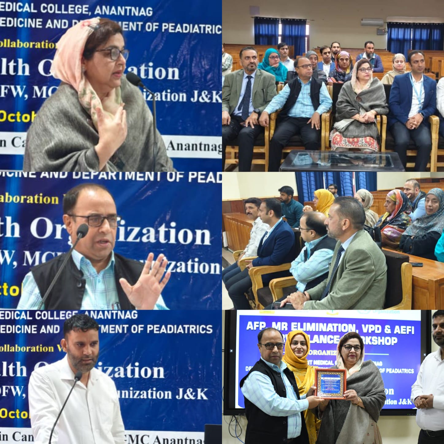 ANANTNAG: In a significant initiative to strengthen immunization efforts and disease prevention, the Departments of Community Medicine and Pediatrics at Government Medical College (GMC) Anantnag organized a comprehensive workshop focusing on Acute Flaccid Paralysis (AFP), Measles-Rubella (MR) elimination, Vaccine Preventable Disease (VPD) surveillance, and Adverse Events Following Immunization (AEFI) surveillance.