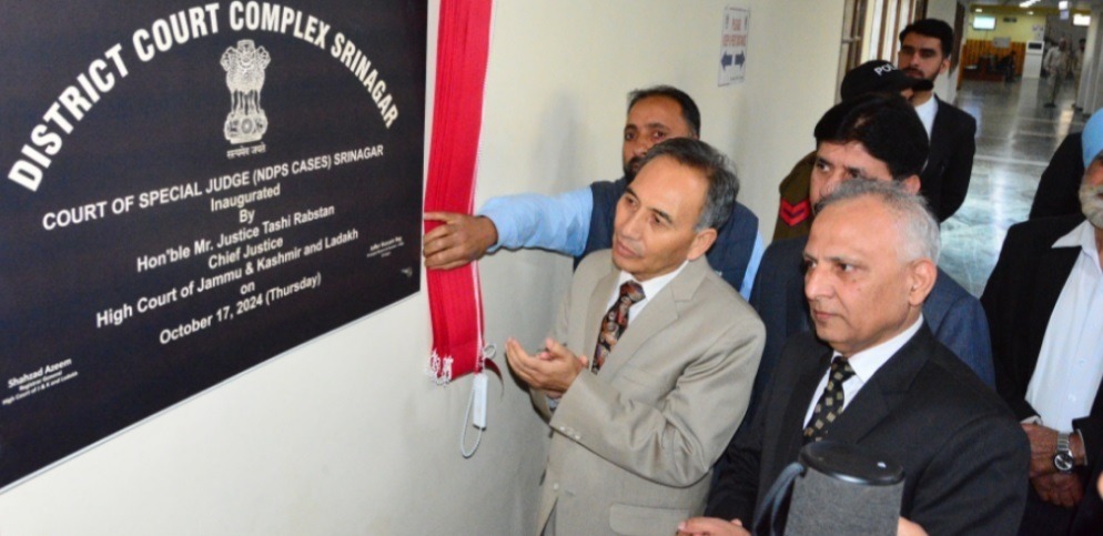 SRINAGAR: Chief Justice, High Court of Jammu & Kashmir and Ladakh and Patron-in-Chief J&K Legal Services Authority, Justice Tashi Rabstan, today inaugurated the newly created Court of Special Judge (NDPS), in District Court Complex Srinagar.