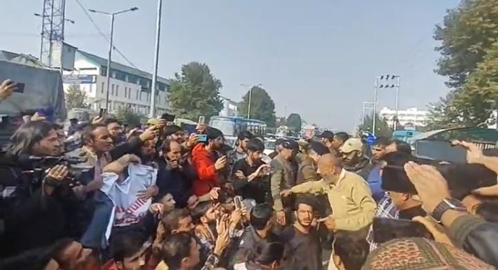 Rashid, who heads the Awami Ittehad Party (AIP), held a protest along with his party workers near the Civil Secretariat — the seat of the Jammu and Kashmir government — here.