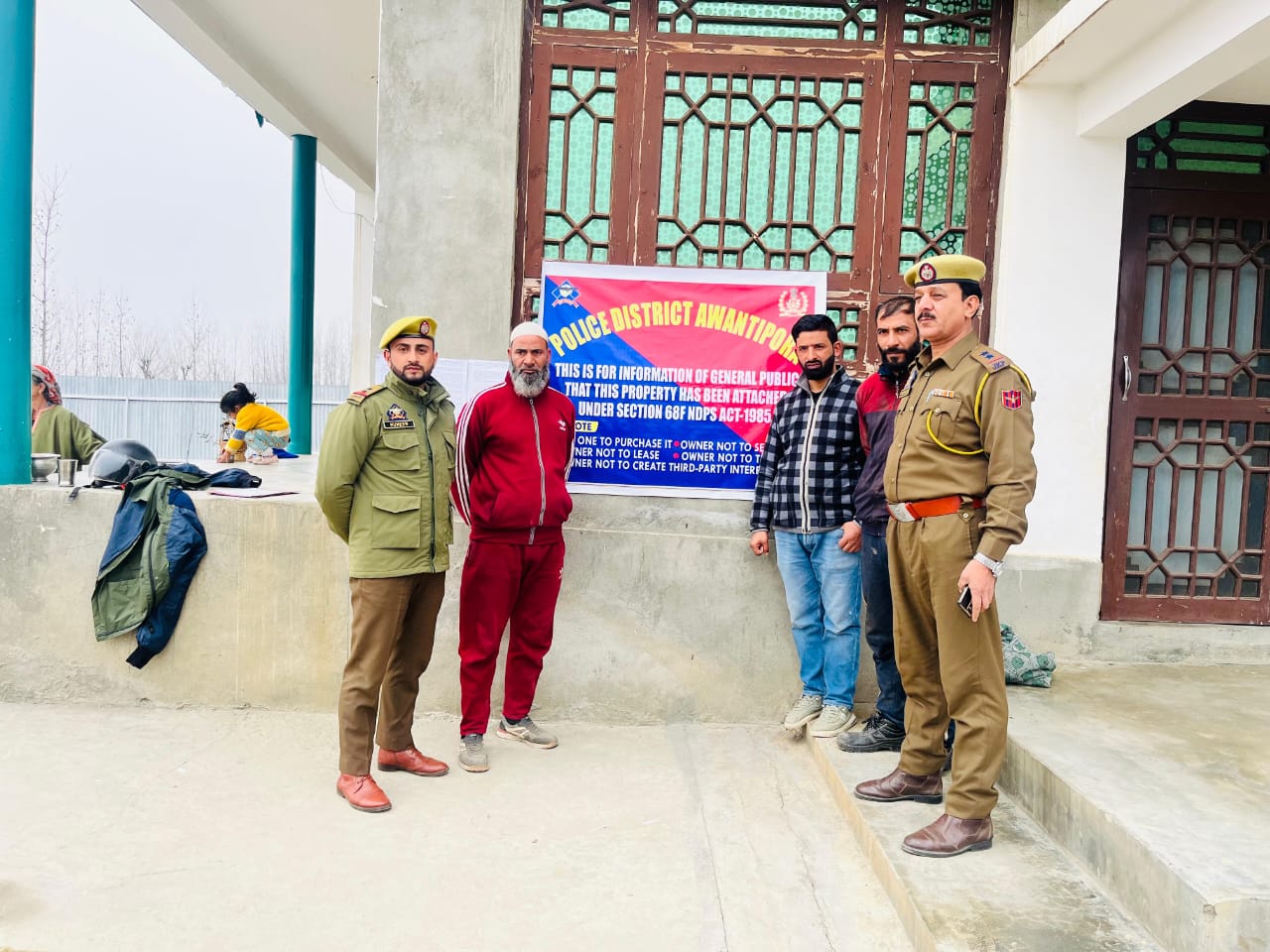 Srinagar: Police on Tuesday said that continuing its crackdown on Drug peddlers, property worth 30 lacs have been attached in South Kashmir’s Awantipora.