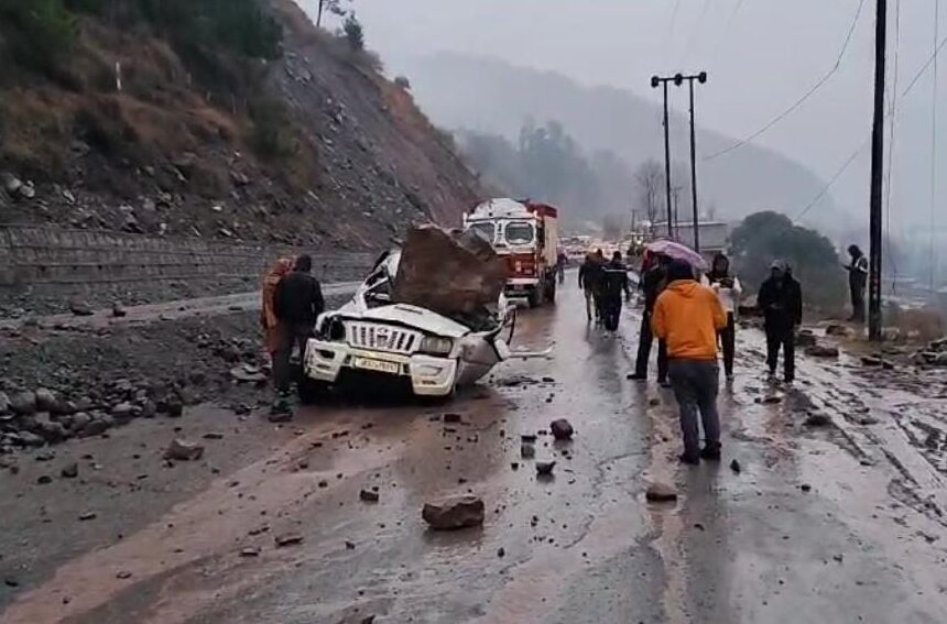 A boulder hit a sports utility vehicle (SUV) near Dherian Ziyarat in the Surankote area on the Jammu-Poonch national highway in the evening, resulting in the death of the driver, the officials said.