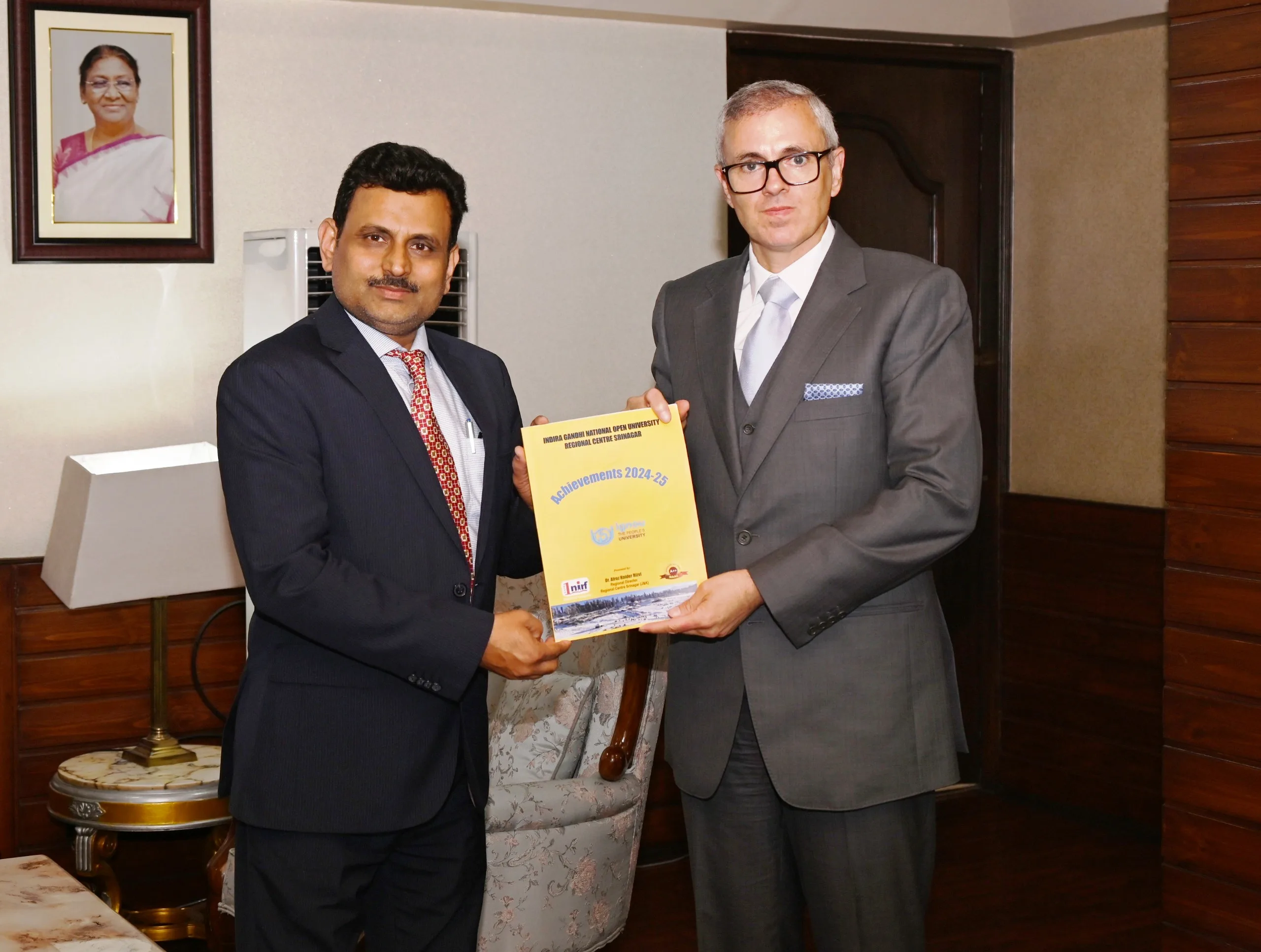 Srinagar: The Chief Minister of the Union Territory of Jammu & Kashmir, Shri Omar Abdullah, lauded the achievements of Indira Gandhi National Open University (IGNOU) Regional Centre Srinagar for the academic year 2024–25, following a meeting with the Regional Director, Regional Centre, IGNOU Srinagar, Dr. A.H. Rizvi.