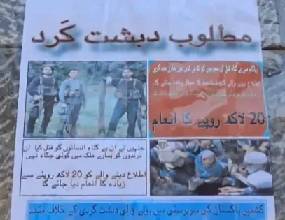 Srinagar:  Posters have appeared in different parts of south Kashmir’s Shopian district announcing a reward of Rs 20 lakh for information about three terrorists involved in the Pahalgam attack that left 26 people dead, officials said on Tuesday.