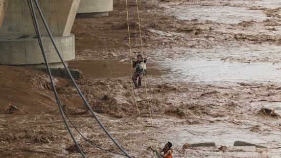 He was rescued by State Disaster Response Force (SDRF) personnel who dropped a ladder from the bridge and managed to pull him out after remaining trapped for around two hours, the officials said.