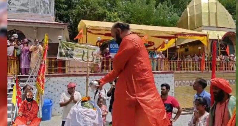 Srinagar: The final leg of the Amarnath Yatra began on Monday as Mahant Deependra Giri took out the ‘Chhari Mubarak’, sacred mace of Lord Shiva, from its abode at Dashnami Akhara Temple for its journey to the cave shrine in south Kashmir Himalayas.
