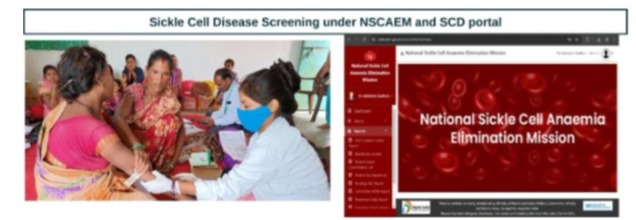 The National Health Policy 2017 laid the groundwork for addressing this crisis, emphasizing its unique health needs. Building on this, the Union Budget 2023 announced the NSCAEM, setting a target to screen 7 crore individuals under 40 years by FY 2025-2026, in a mission mode. The activity was implemented under the Ministry of Health and Family Welfare (MoHFW), making it one of the largest population-based genetic screening programs globally. The mission also aims to eliminate genetic transmission of SCD by 2047 while providing comprehensive care to those already afflicted.
