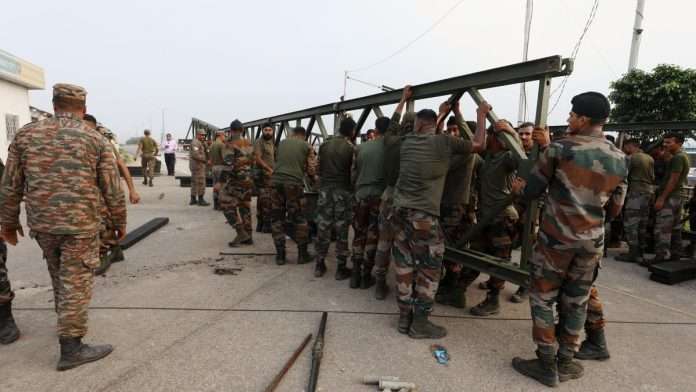 Jammu: Indian Army engineers, in a 12-hour-long operation, laid a 110-foot Bailey bridge connecting the flood-hit Tawi bridge to restore vehicular traffic on the vital link in Jammu city.