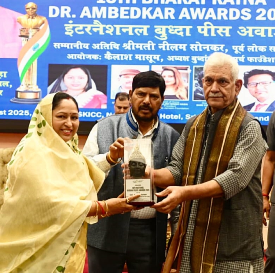 SRINAGAR: Lieutenant Governor Manoj Sinha felicitated the Awardees of International Buddha Peace Awards and Bharat Ratna Dr. Bhim Rao Ambedkar Awards, organised by Buddhanjali Research Foundation, at Srinagar.