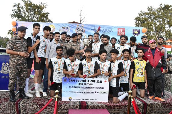 Srinagar: The 2nd Edition of the CRPF Football Cup 2025 concluded with great zeal at the Synthetic Football Turf, TRC Srinagar, with Hamdaniya FC emerging champions after defeating Ganderbal United FC 3-1 in the final.
