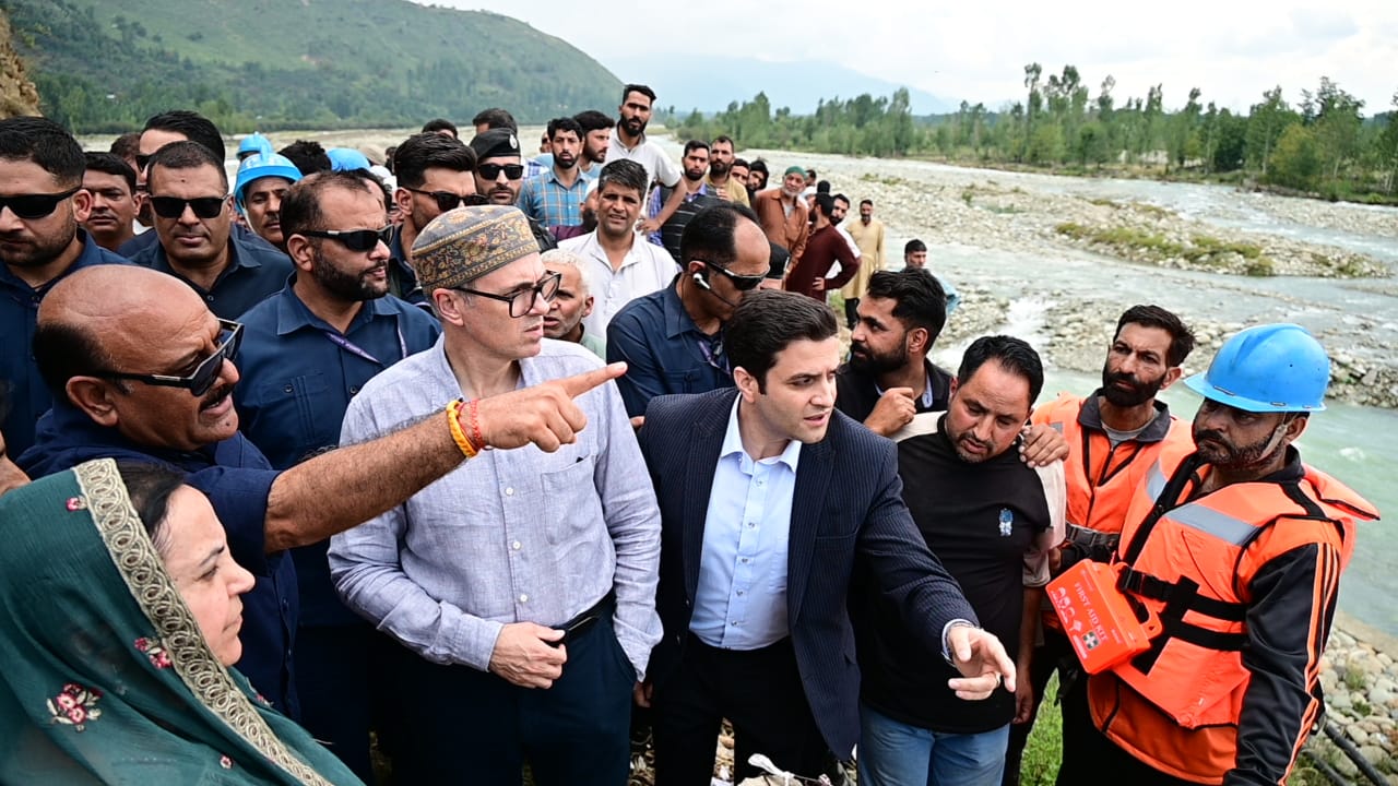 Accompanied by Deputy Chief Minister Surinder Singh Choudhary, Ministers Sakina Itoo and Javed Rana, Advisor Nasir Aslam Wani, legislator Peerzada Feroz, Deputy Commissioner Kulgam Athar Aamir Khan, SSP Kulgam Sahil Sarangal, and other senior officers, the Chief Minister toured several affected areas including Khudwani, Aadigatnoo, Gudder, Laisoo and adjoining localities.