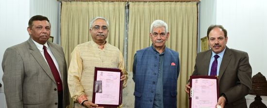 An official statement issued here said that Vice-Chancellor, (IUST), Prof. Shakil Ahmad Romshoo, along with Director, (CSIR-NEIST), Dr. Virendra M. Tiwari, called on Lieutenant Governor, Manoj Sinha, at Raj Bhawan, today and on the occasion, the two institutions formally exchanged a Memorandum of Understanding (MoU) aimed at strengthening research collaboration, innovation, and knowledge exchange.