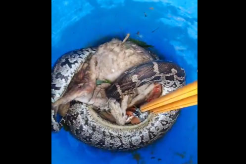 The python had killed and swallowed a jackal but later vomited it out. The reptile will be released in the forest, the officials said. (PTI)
