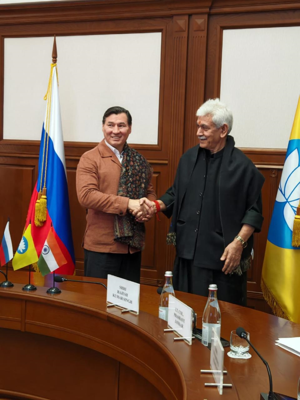 The Lieutenant Governor Manoj Sinha today handed over the exhibitions belonging to International Buddhist Confederation and the National Museum to the Kalmyk Museum at Elista, Republic of Kalmykia, Russia.