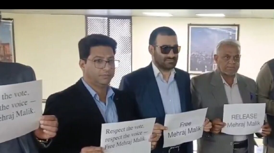 According to details available with news agency—Kashmir News Observer (KNO) several MLAs of National Conference, Congress and others carried placards today morning, seeking release of Mehraj Malik.
