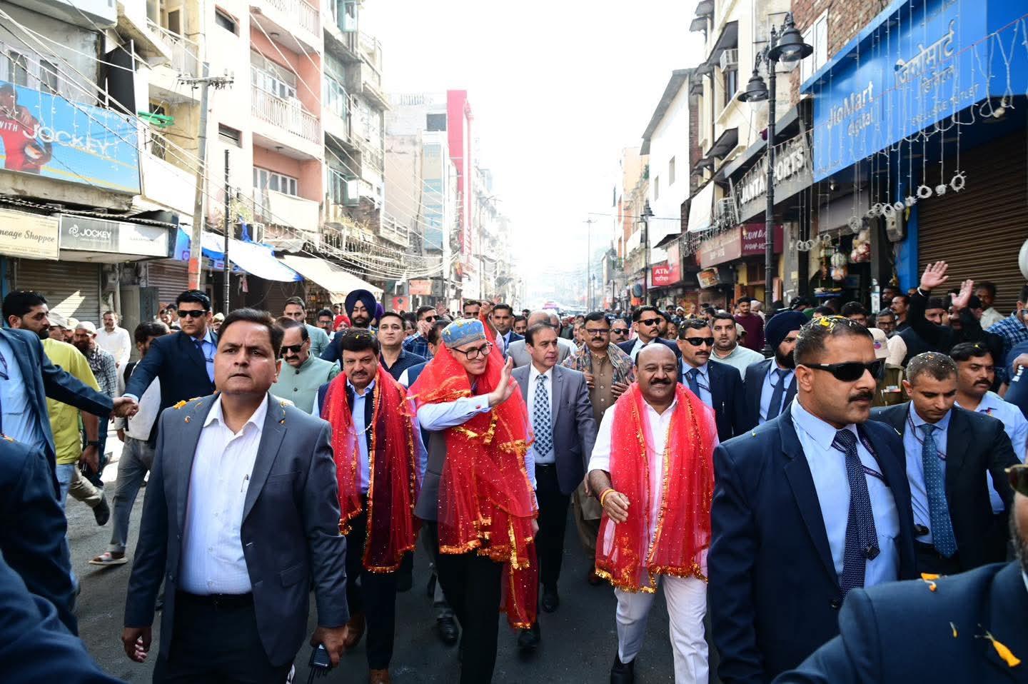 Jammu: Chief Minister Omar Abdullah arrived in Jammu today for the biannual Darbar Move and was greeted by a large crowd of residents. Traders and members of civil society welcomed him warmly at Shahidi Chowk and Raghunath Bazar.