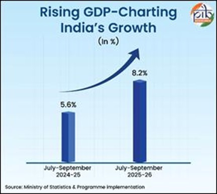With growth accelerating, India has once again outpaced global peers, reinforcing its position as the fastest-growing major economy. The surge is supported by resilient domestic demand, moderating inflation, and higher labour force participation. A revival in domestic investment and strong investor sentiment signals a stable and broad-based economy. As reforms gather pace and consumption remains optimistic, India’s economic outlook continues to upbeat, signalling sustained momentum and growth across sectors.