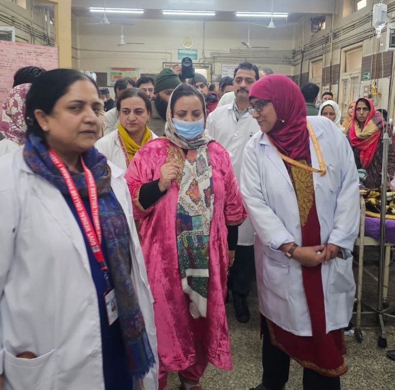 SRINAGAR: Minister for Health and Medical Education, Social Welfare and Education, Sakeena Itoo, today carried out an extensive inspection of SMHS Hospital Srinagar, during which the Minister took a comprehensive review of patient care services, infrastructure, availability of essential medicines and other facilities at the hospital.
