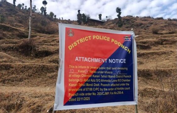 Poonch: Police on Thursday attached the immovable property of a “Pakistan-based terror handler” in Poonch district, officials said.