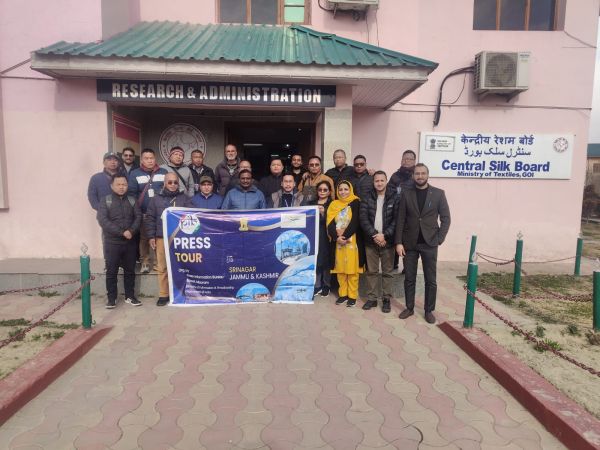 The delegation also visited the Central Silk Board (CSB), Srinagar. The team was welcomed by Dr N. Sakthivel, Director, CSB–CSR&TI, Pampore, J&K, who briefed the delegates on the Board’s key initiatives, research activities, and technological interventions aimed at strengthening the sericulture sector in the region.