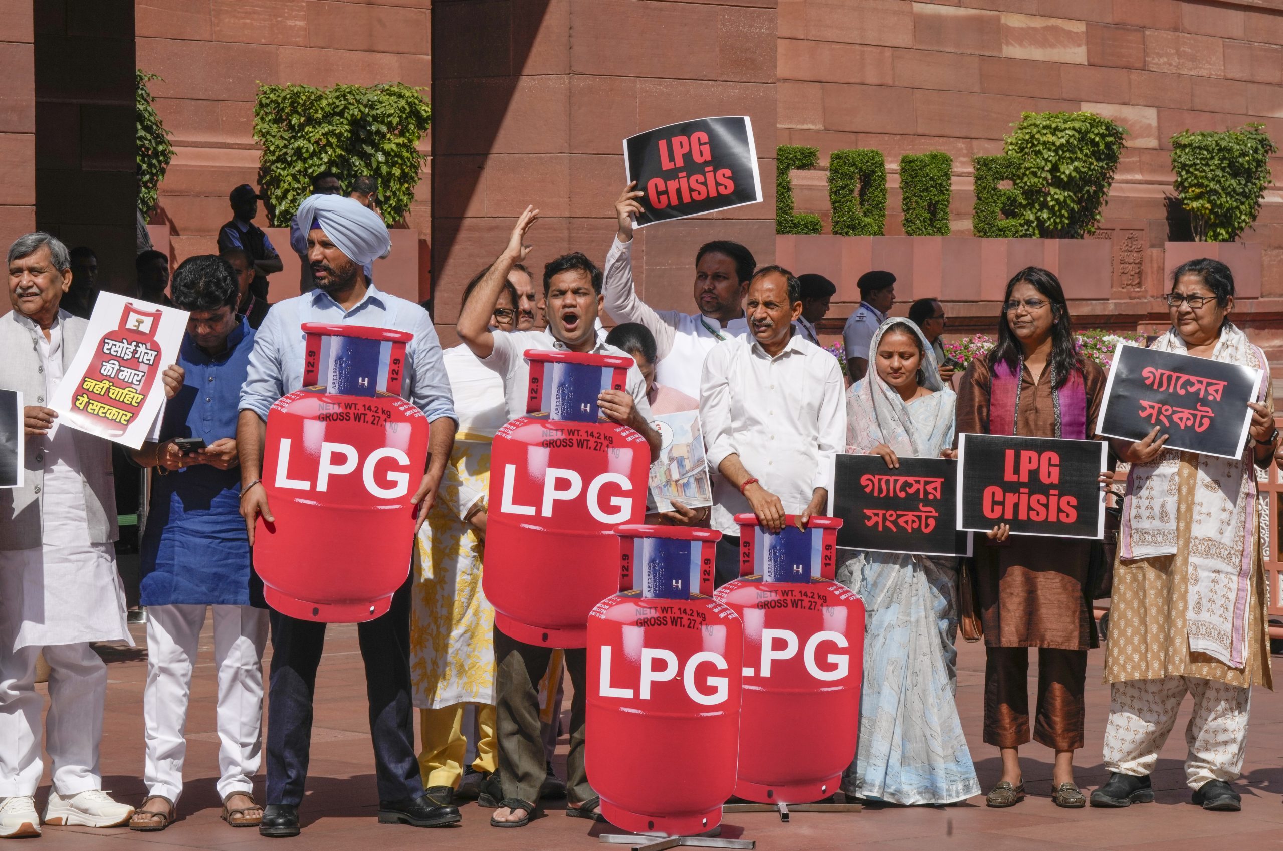 LPG crisis: Opposition MPs protest in Parliament complex, question PM’s absence from House