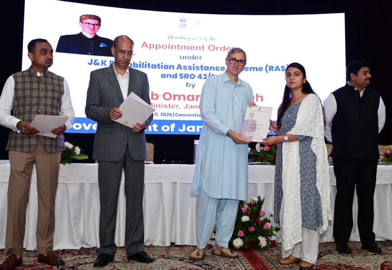Jammu: Chief Minister Omar Abdullah on Monday handed over appointment orders to 124 candidates from the Jammu division under the rehabilitation assistance scheme (RAS), urging the appointees to serve with dedication, integrity and compassion.